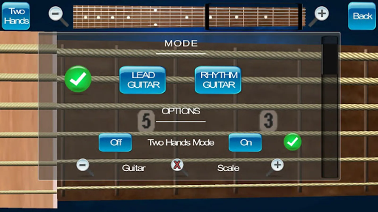 2. Lead guitar for two hands. You can select music notes with one hand and play strings with second hand.
