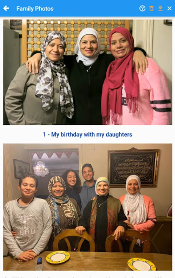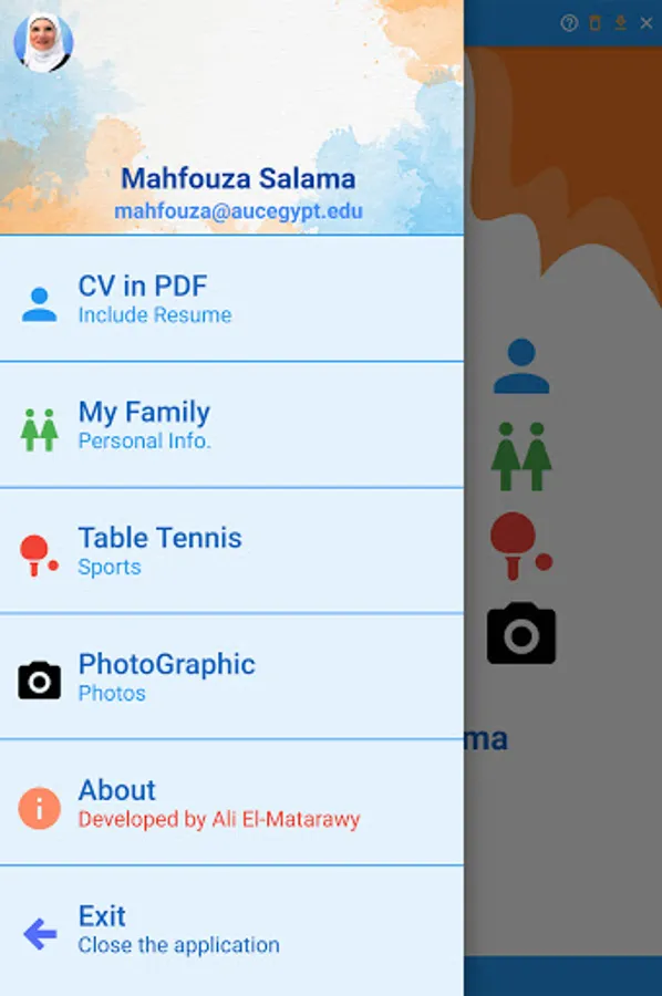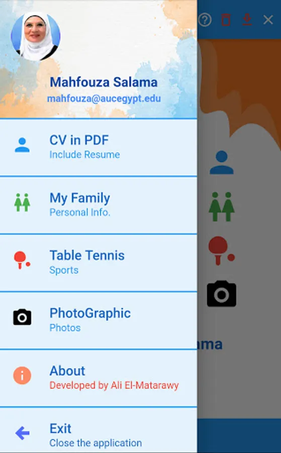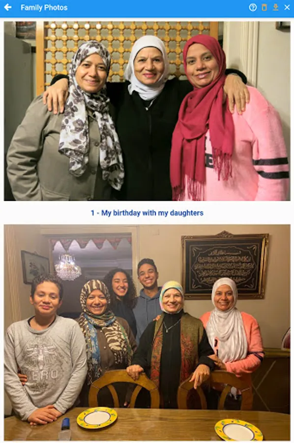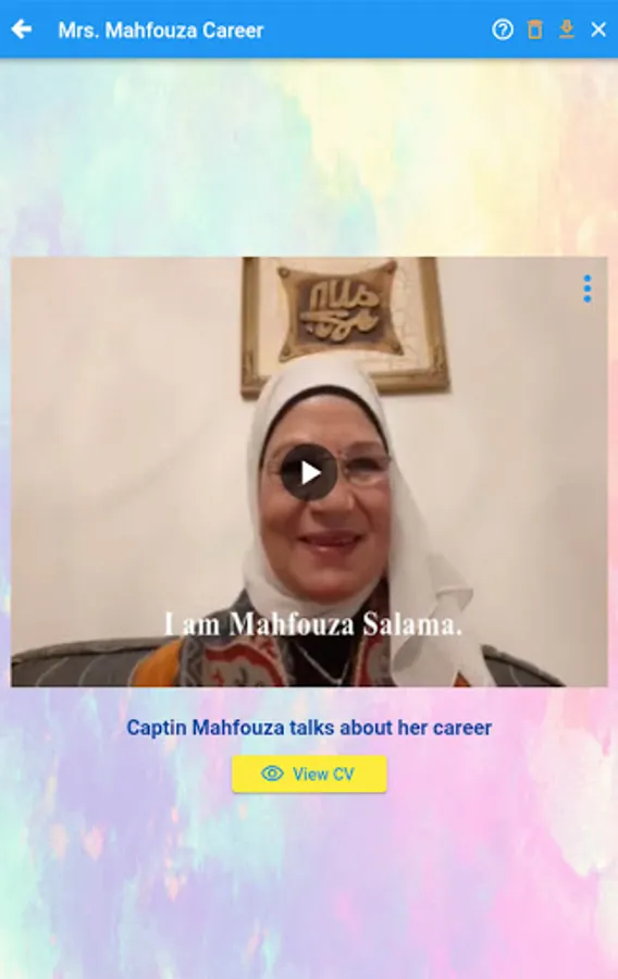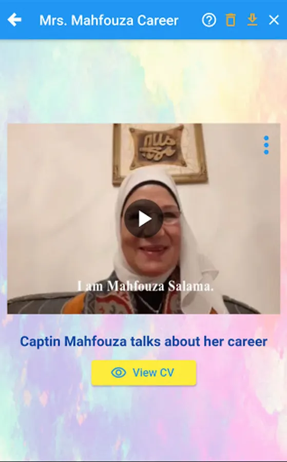 This App. is a life documentation of Mrs. Mahfouza Salama. In addition to her personal information, career, family and professional life, she has two main activities, those are table tennis and photography. This application gives a full detailed information by videos and photos for her career, family, sport activity (table tennis) and photographic activity. Believe it or not Mrs. Mahfouza started playing table tennis at age of almost 64 years old and she got the first rank in the India international championships in an event is younger than her age, also in Egypt, she got the first, second, or third rank in all tournaments she participated in the event of her age. Also she started photographic activity after she had 60 years old and got many appreciation certificates in most of exhibitions she participated in