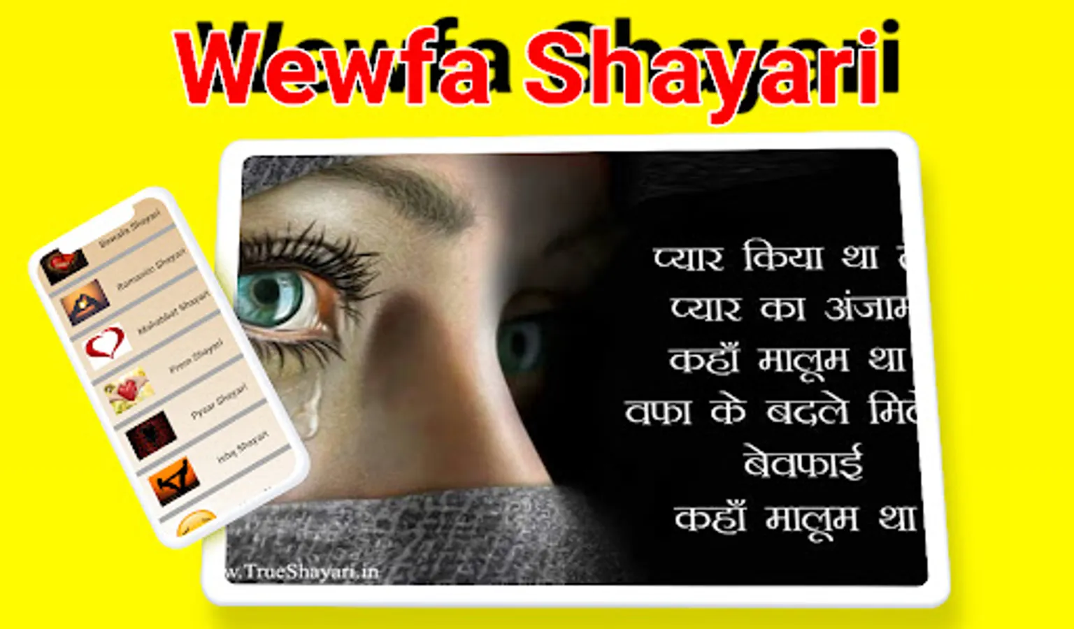 We have included Bewafa Shayari and Sad Shayari in this app for painful and broken hearts in love. It has become a trend nowadays to exchange things of happiness or sorrow related to your heart on social networks. This is how the recent information about broken and heartbroken hearts is shared these days.
