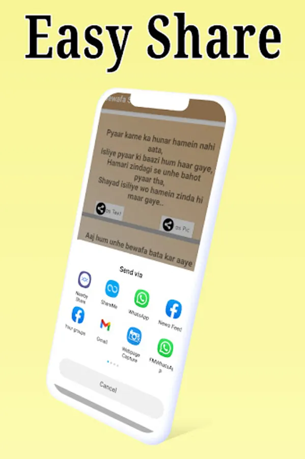 hindi sms application different shayari and love sms. using this application you share wia all social media like !