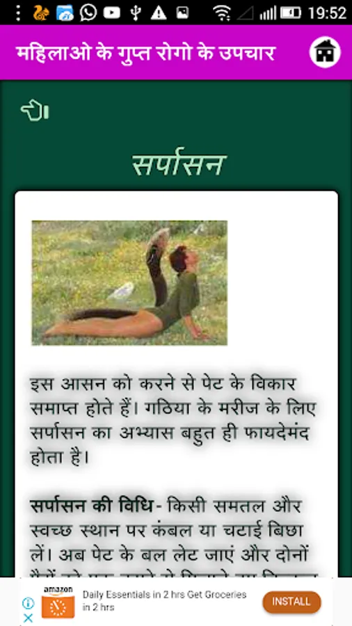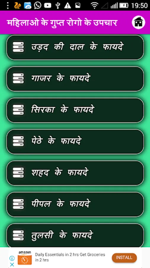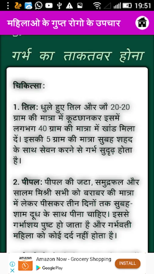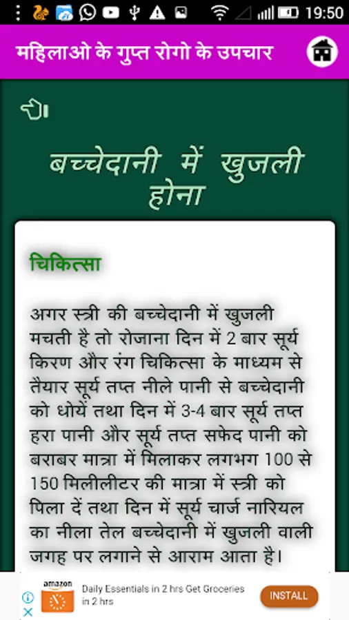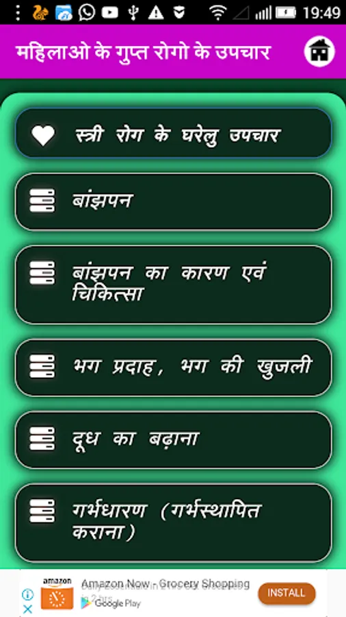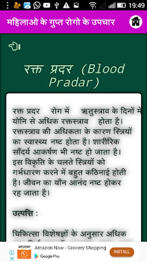 Female suffer from various kind of female disease but due to Shy nature they did not share with anyone but it leads to big problem and spoil Marriage life,So We develop this Application.