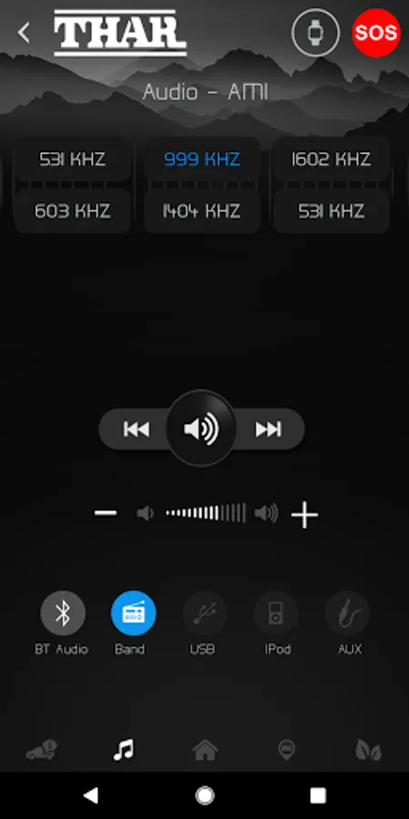 v. Source selection: USB / BAND / BT audio / AUX / iPod