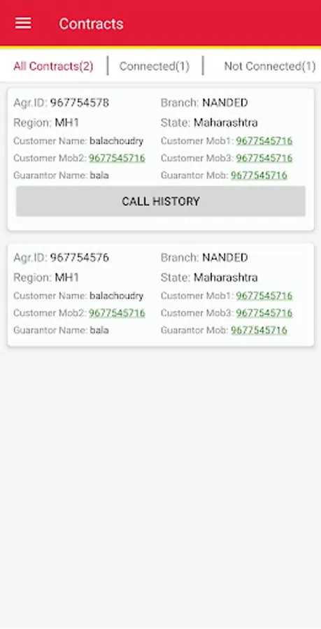 o Call History with respect to the calls made will be available post calling