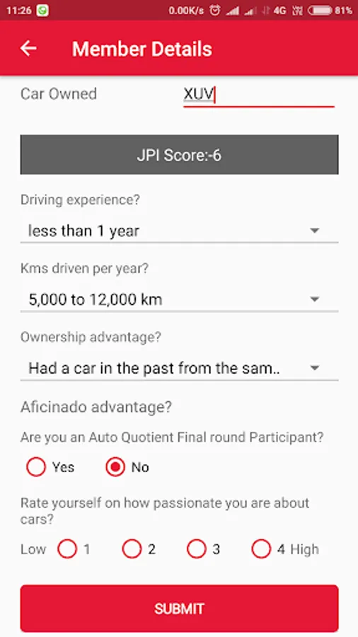 Feedback for a new vehicle from the customer.