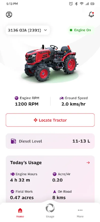 Available in four languages, MYOJA app provides a simple interface for customers to easily leverage the intelligent telematics in their Mahindra OJA tractor