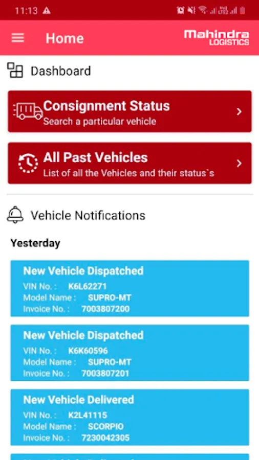 This is an exclusive application for the authorized dealers of Mahindra and Mahindra to get real time visibility of their incoming orders. This application empowers the dealers to view the status of their orders , plan their capacity and update their customers on deliveries. Powered by Mahindra Logistics , the application enables real time tracking for the incoming orders with birds eye view on the map.