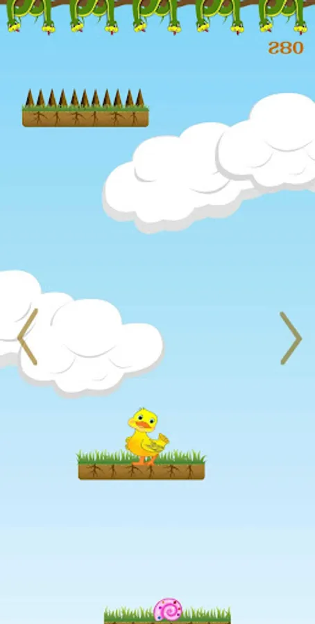 Jump into this awesome free game and spend your casual time playing Duck Duck Goofs 🦆. It's a top-down vertical game where you need to keep your DUCK character alive climbing down. On your way, collect the snails to get point and avoid spikey objects. This spikey objects will kill your DUCK 🦆 character. The top-down opportunity is endless and you need to apply your skills to get points. Get the highest points by keeping the character alive and climb down. This cartoonish game is endless means you can play as long as you want. Spend your free or leisure time and chill out.