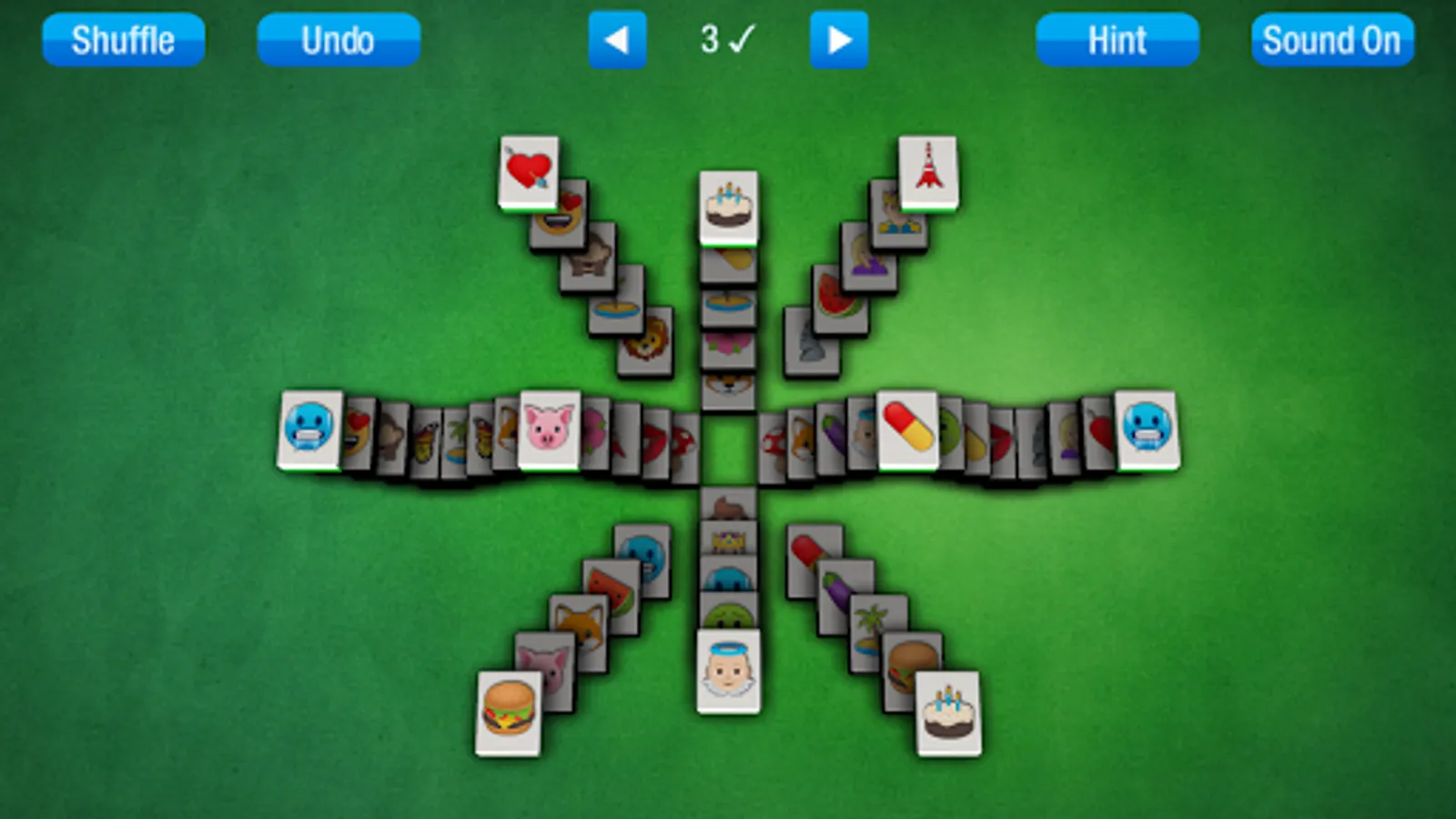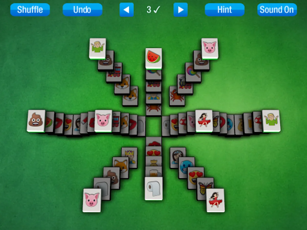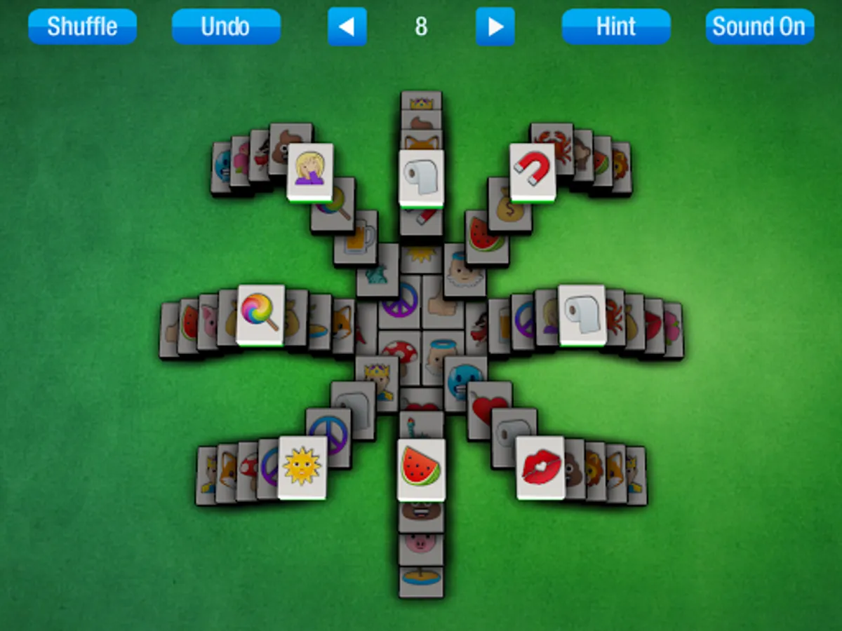 The goal is to remove all the tiles from the board. You may remove only paired free tiles. The tile is free when there are no tiles either to the left or to the right from it.