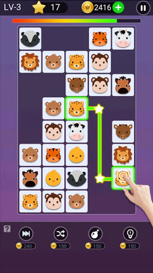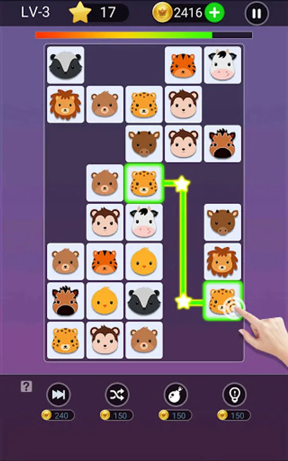 -Click the same tile to let them eliminate.