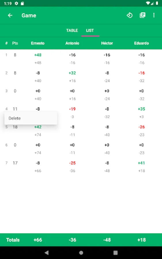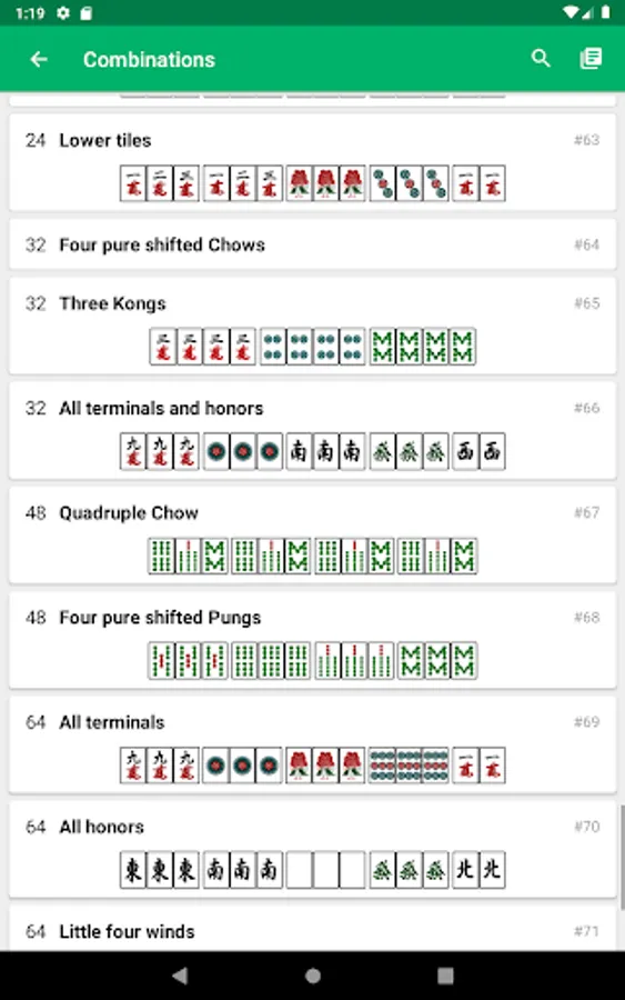 Helps annotating easy and fast a real mahjong game without need of paper and boring calculations, neither need to know how, only count your hand points and this app do the work for you. In all moment you can see all the rounds and also includes a combinations list for consult during the game.
