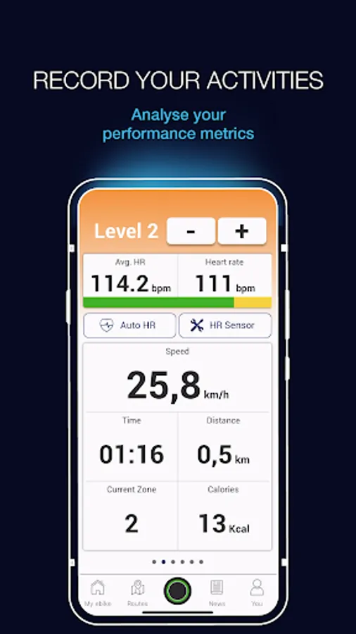 Are you ready? Start an activity and you will see all the information you need like instant speed, level of assistance, remaining battery, time and distance…and more. Once finished, view extended information about your recorded activities directly on the App or through a web browser.