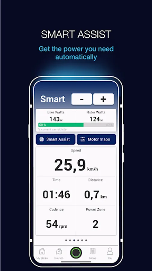 Configure motor maps of your e-bike, for each assistance level, to always get you the right level of power from your motor.