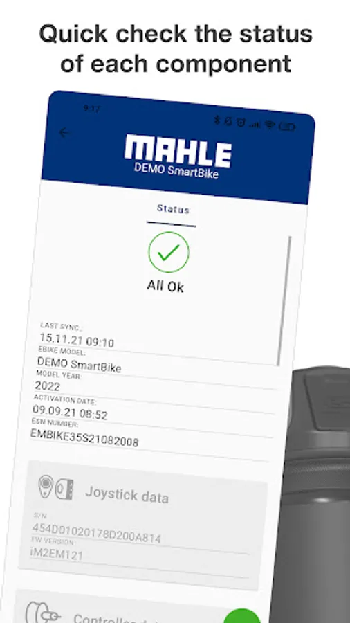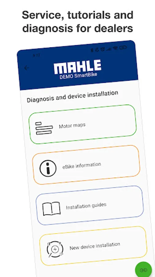 SmartBike Lab is a MAHLE SmartBike Systems smartphone application designed especially for stores and suppliers of electric bicycles that uses any MAHLE SmartBike System for technical support and diagnosis. It is compatible with most of the products and systems designed by MAHLE SmartBikes . The function of this application is to connect the eBike to the mobile phone of the technical service user, in order to directly carry out procedures such as diagnosis, reparation, set-up and updating or the replacement of components in case of a malfunction.