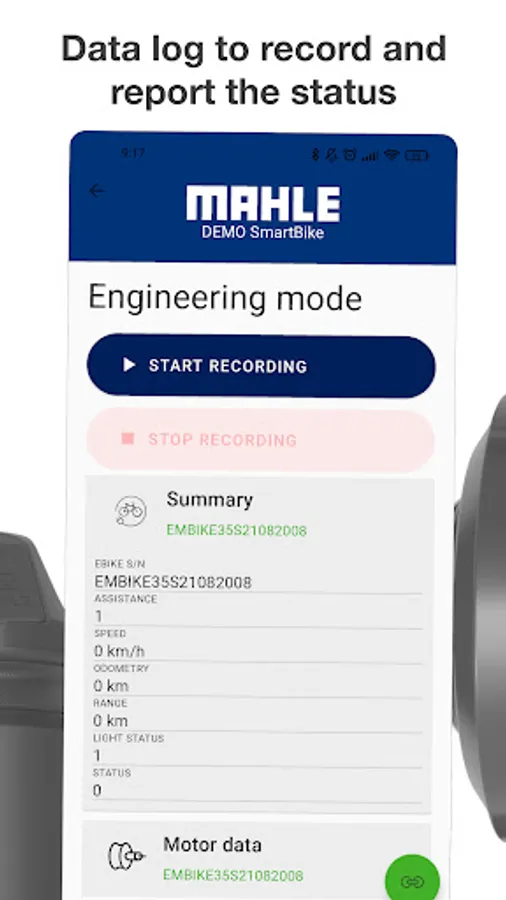 This mode let you see devices information in real time while you are interacting with your connected ebike. There is also a helpful option to record situations where dealers want to report some specific behaviour of ebike.