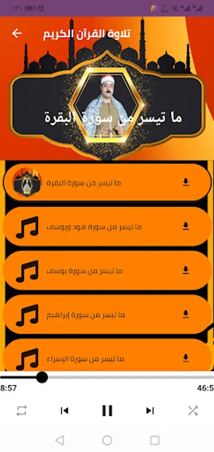 The application of the Qur’an, Sheikh Mahmoud Al-Saeed Abdul-Samad Al-Zanati, allows you to listen and download the Noble Qur’an with the voice of the reciter Mahmoud Al-Saeed Abdul-Samad Al-Zanati, and you can download the Noble Qur’an to your mobile phone easily and conveniently through one application that includes humbled recitations from the Holy Qur’an mp3 with the voice of Sheikh Mahmoud Saeed Abdul-Samad