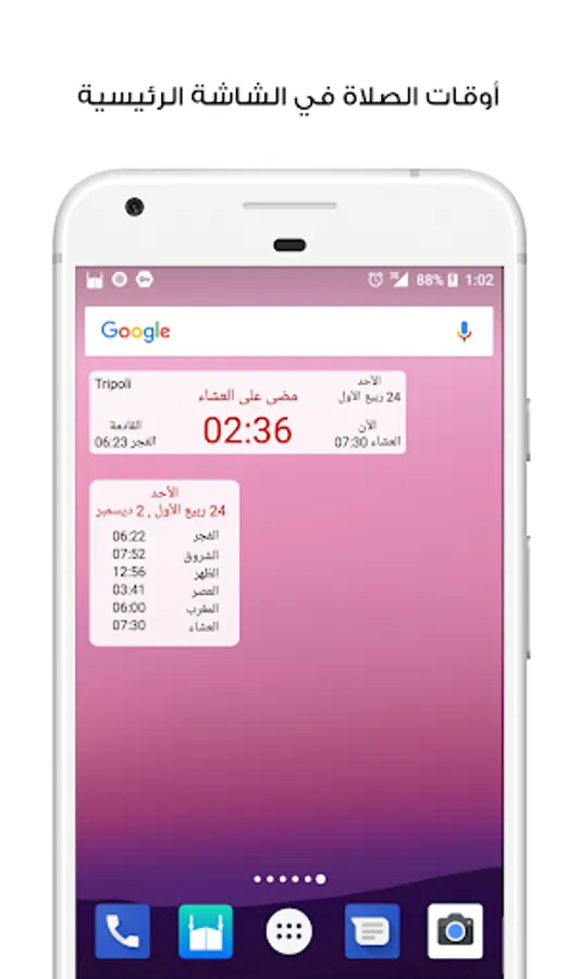 أوقات الصلاة في الشاشة الرئيسية ( الويدجت )