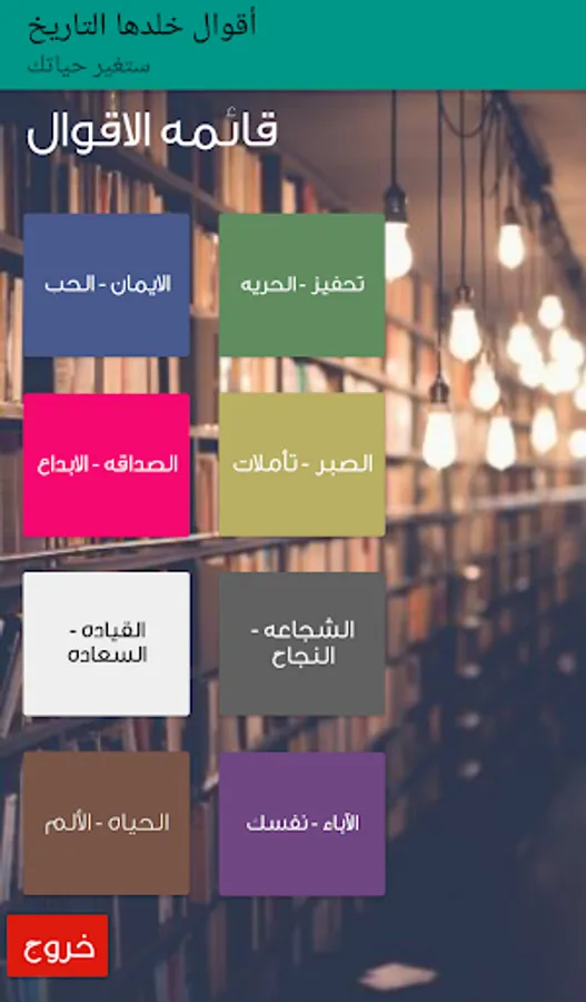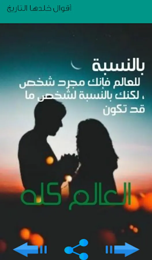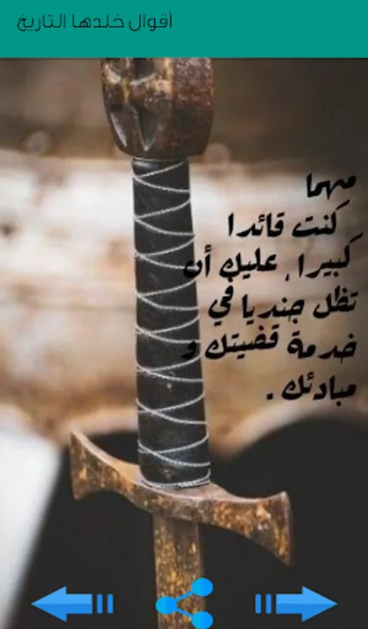 An informative application that provides a set of judgments and sayings of famous personalities throughout history in more than one field, for example judgment and sayings about love and life, sayings about freedom, motivation, faith, patience, creativity, friendship, sayings about success, courage, leadership, happiness, pain and others .. The goal is to spread valuable ideas for great and successful personalities Throughout history, for all members of society of all ages in order to change their ideas for the better, achieve their goals, and then achieve their dreams and aspirations.