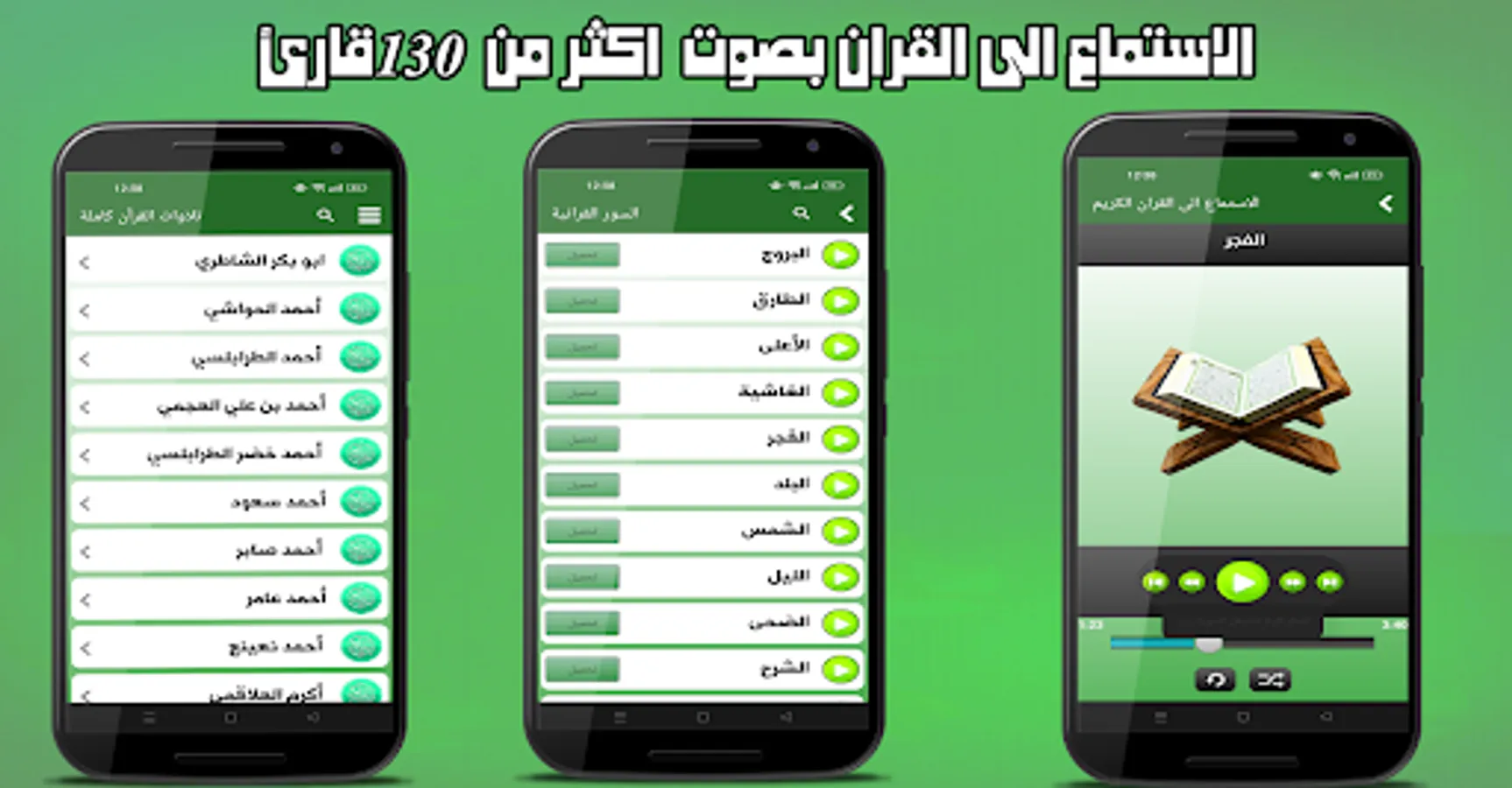 - With the status of the Noble Qur’an with the voice of the most famous sheikhs and readers of the Arab and Islamic world, 120 readers with the ability to download and listen without the Internet.