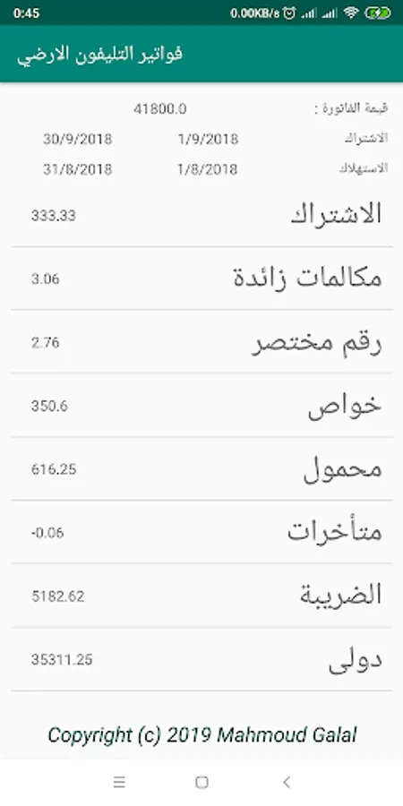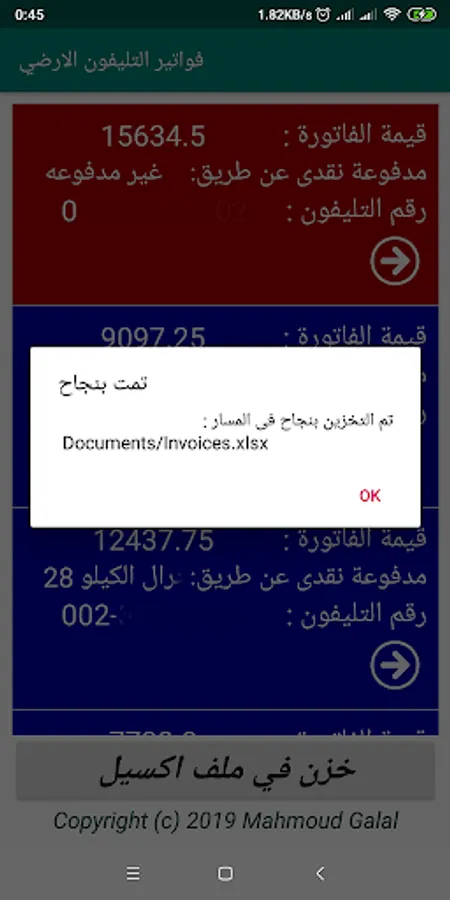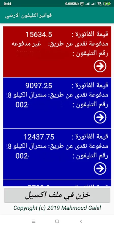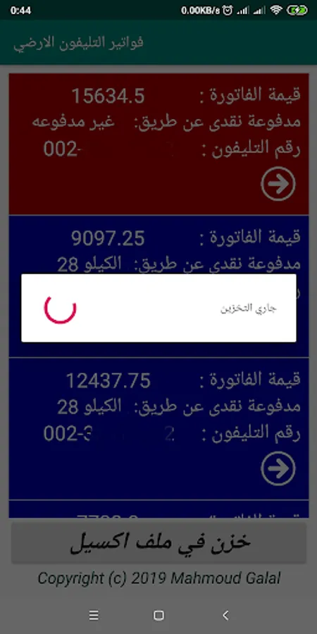 الابلكيشن بسيط اوي وفعال تقدر تستخدمه عشان تعرف فاتوره الارضى وتقدر كمان تخزنها فى شكل ملف اكسيل او تشوفها على الجهاز مباشره حتى لو مفيش انترنت .