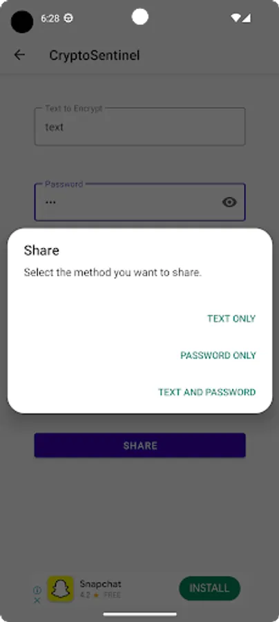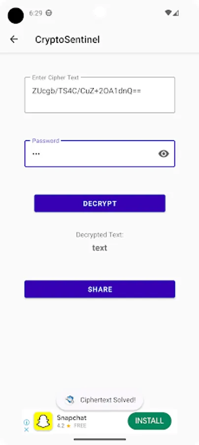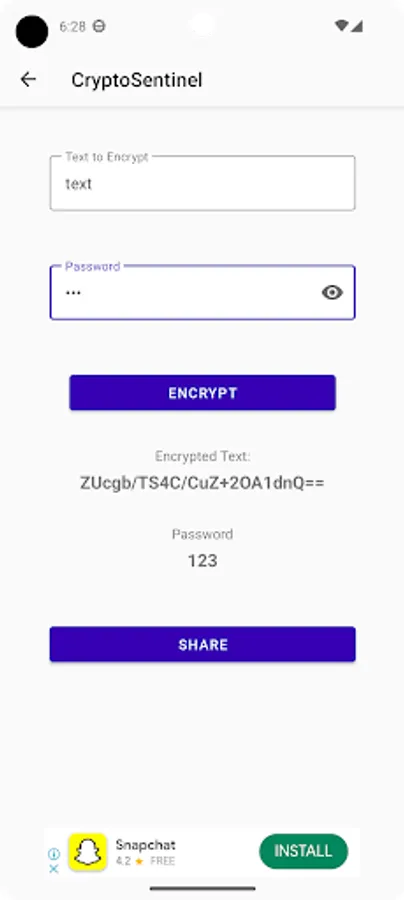 Application that performs the operations of encrypting and decrypting the entered text using the AES algorithm.