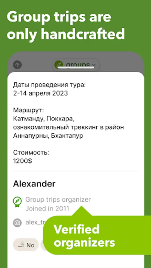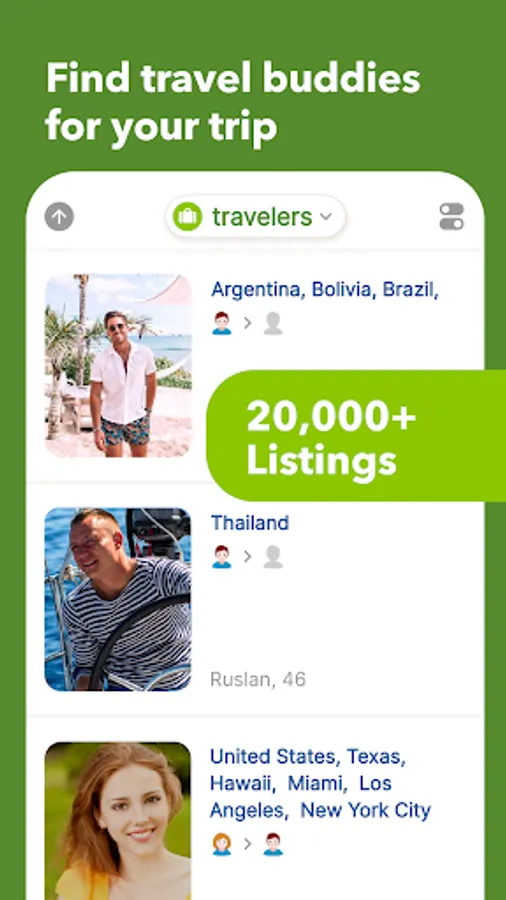 - To search for travel companions, groups and walks, set the corresponding search filter.