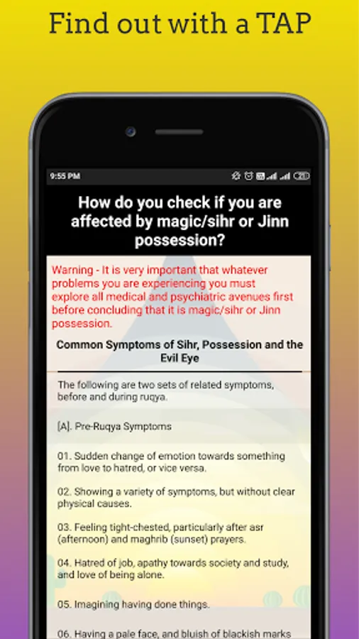 Warning 2 -It is very important that whatever problems you are experiencing you must explore all medical avenues first before concluding that it is magic/sihr or jinn possession.