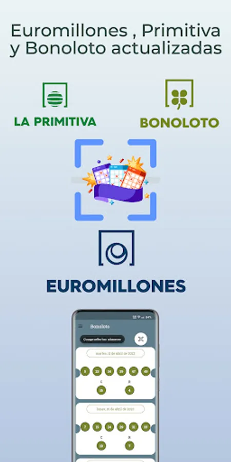 Welcome to our lottery checker app! With this application, you will be able to check the results of the primitiva, bonoloto and euromillions draws in a clear and updated way.