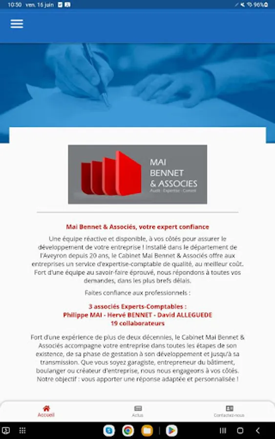 A responsive and available team, at your side to ensure the development of your business! Established in the Aveyron department for 20 years, Cabinet Mai Bennet & Associés offers companies a quality accountancy service at the best price. With a team with proven know-how, we respond to all your requests as soon as possible.
