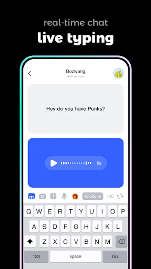 1. Live messaging, no chat history: Knoknok is a brand new way to chat with your friends in real time, displaying messages in real time as you type;