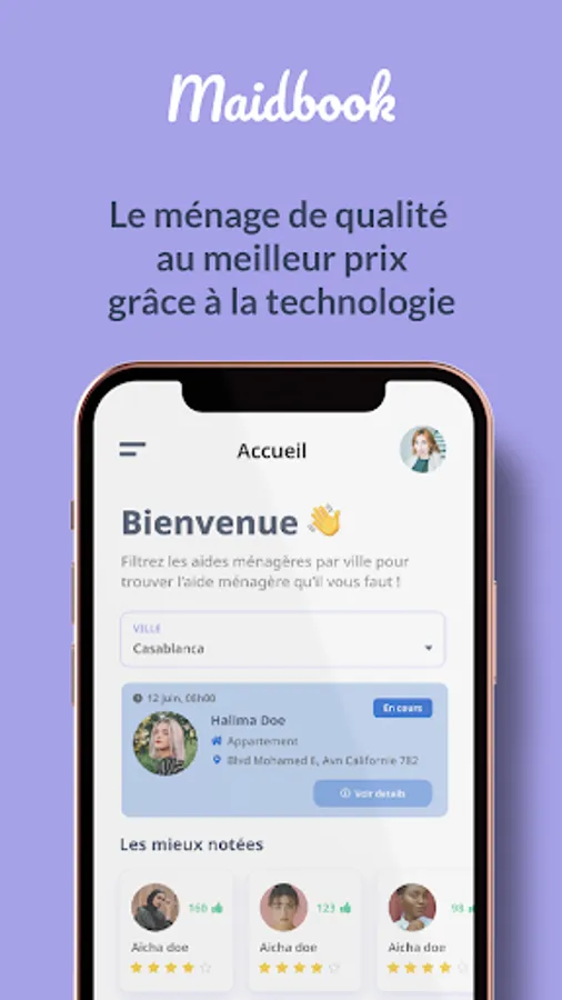 Thanks to this platform, you will find housekeepers daily according to the region where you are thanks to the localization system.