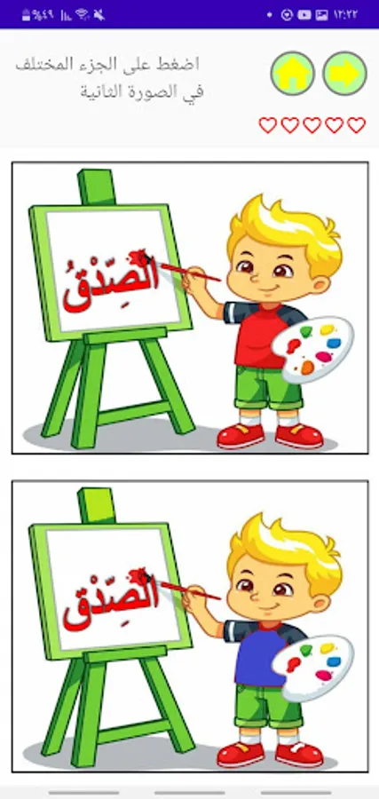 To listen to the story, the child must collect 20 points from the first stage, and in order to play the game of difference between pictures, he must collect 20 points from the second stage, and in order to test his knowledge, he must collect 20 points from the third stage, and thus he has finished the first level and can move on. To the second level and learn about new value and new skills in combination.