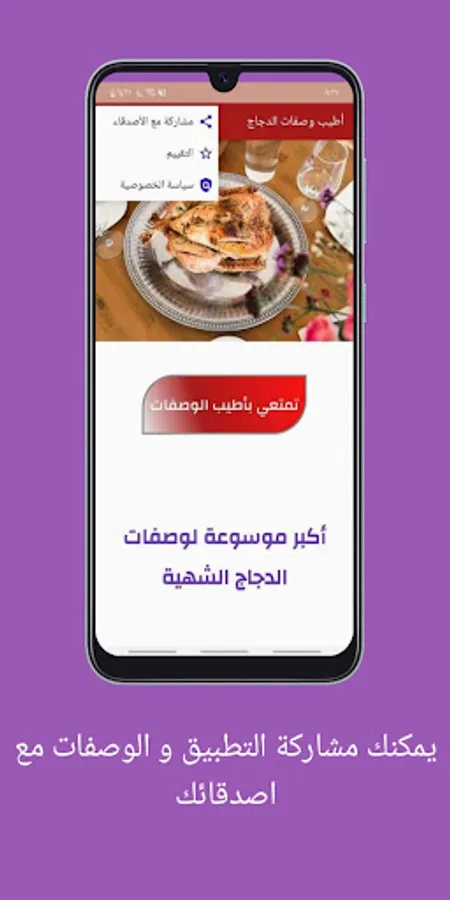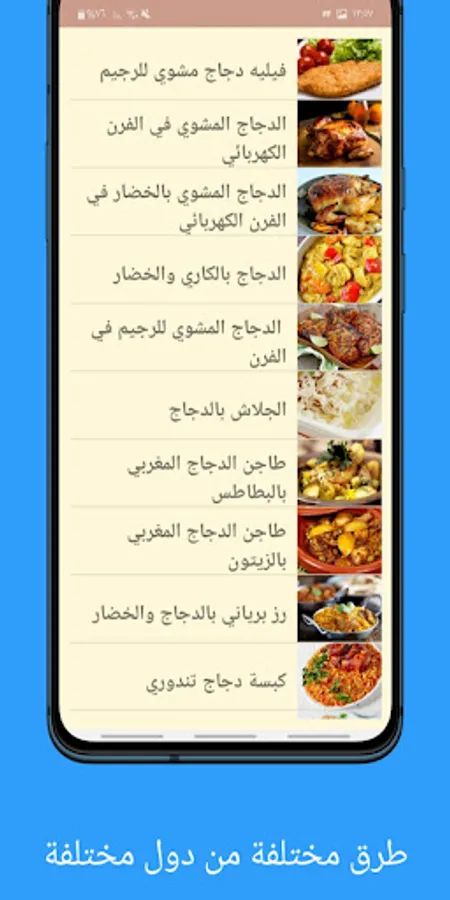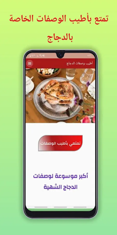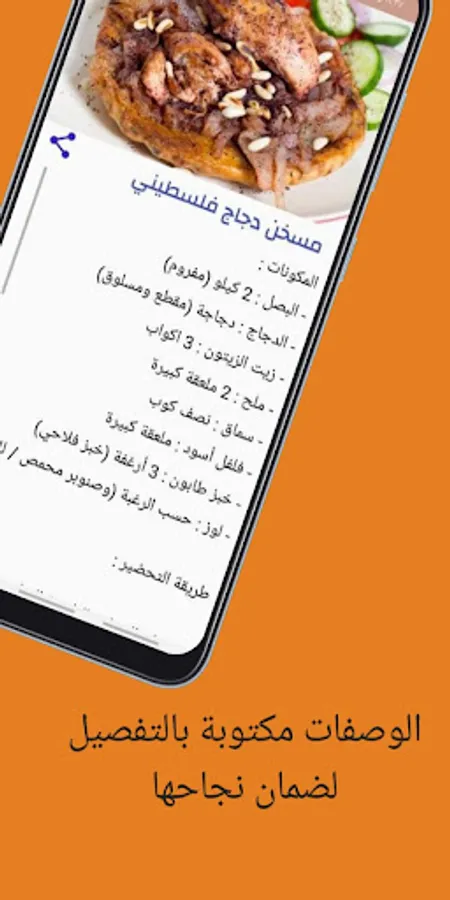 It also includes recipes from different countries, such as Indian, Egyptian, Saudi, Palestinian, and other chicken recipes, all without the need to connect to the Internet.