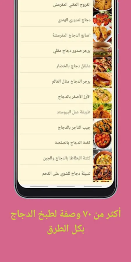 More than 70 recipes for cooking chicken in different ways, including grilled, boiled, fried, fried and stuffed, and it includes various chicken recipes such as oven chicken, chicken with rice, boneless chicken, diet chicken, chicken hamburger, and healthy chicken recipes.