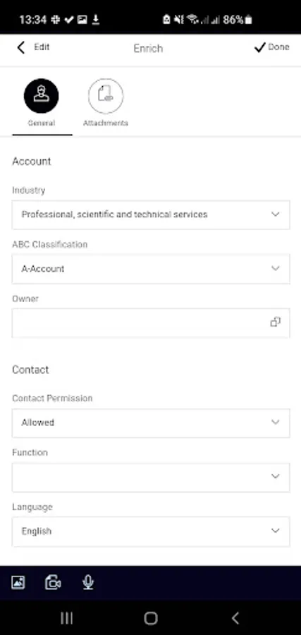 Automatic comparison and transfer of data from a business card or creation of a private contact in SAP Sales Cloud.