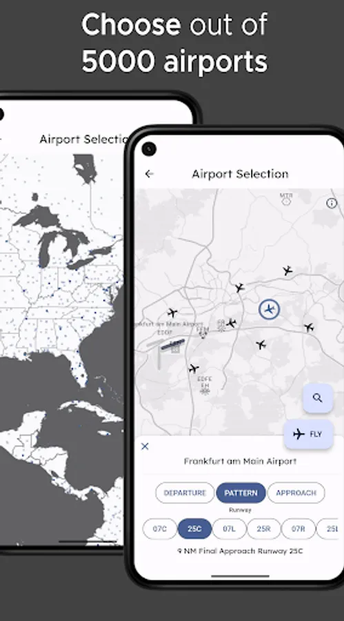 Select one of over 5000 airports to fly approach procedures including ILS.