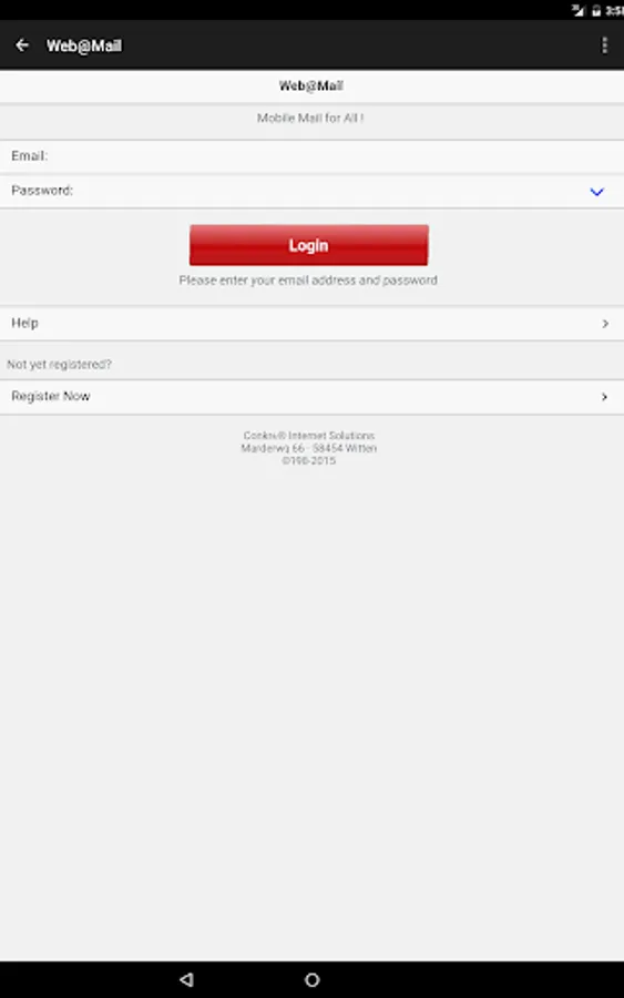 We do a lot to make a simple login. So we automatically obtain the parameters of your mailbox. This works for nearly all mailboxes - not only for the big providers - but in some cases this may fail because there is no unique mechanism for this. If this is the case, you get an error message - please contact us with this message or ask your provider for the settings of your mailbox (If you have problems to read your office-Mail: Make sure that your mailbox is accessible not only in the corporate network, but on the Internet).