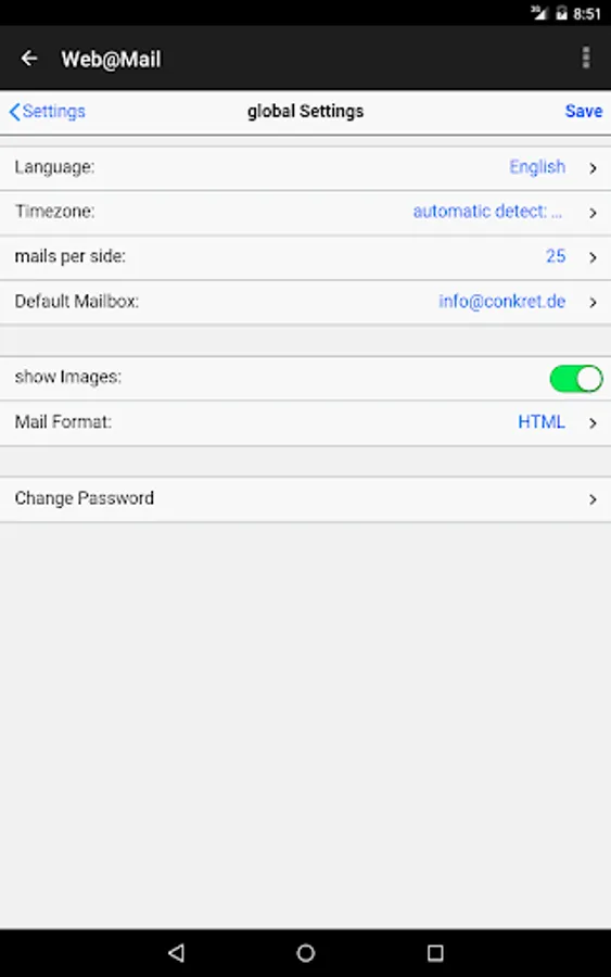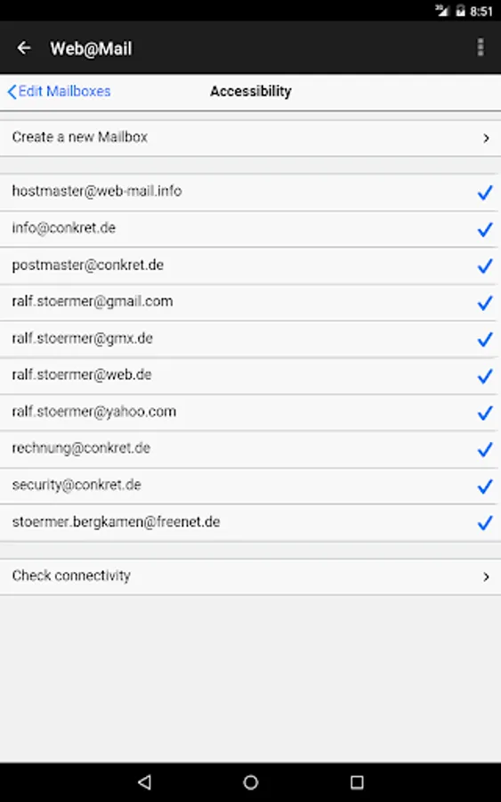 Web@Mail is a web-service with increased security (integrated antivirus and spam-protection) for getting your mail device independently. This is not just another copy of K-9 Mail, but an independent managed webservice - it's a sever-side HTML5-Application for any device.