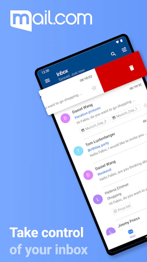 Our secure mail app brings all the speed and convenience of your mail.com email inbox and cloud to your smartphone. Enjoy 24/7 access to your mailbox and cloud storage.