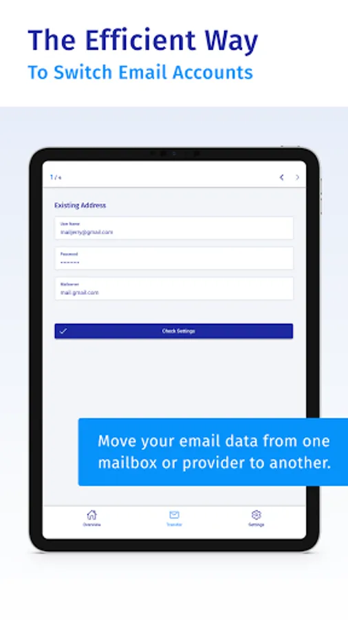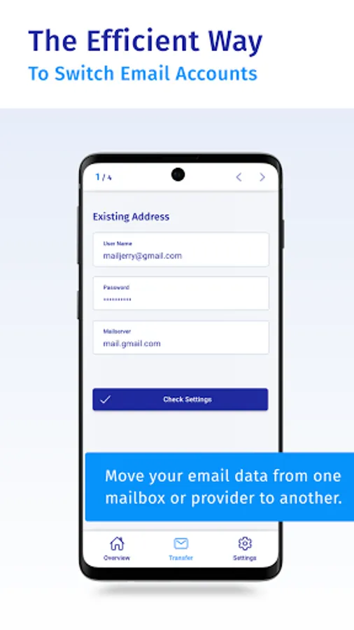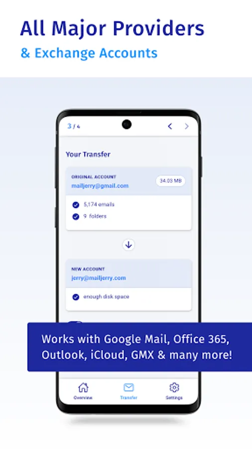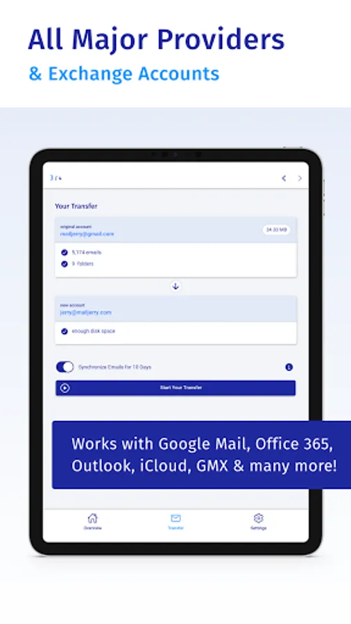 With the MailJerry app, you can easily transfer your emails to a new provider. You don’t know the address of your mail server or your email port? Be it Comcat, Cpanel, Amazon Simple Email, Gmail, GMX, Exchange or many more, MailJerry comes with an enormous range of provider presets and facilitates your transfer.