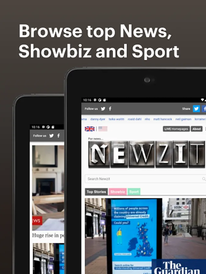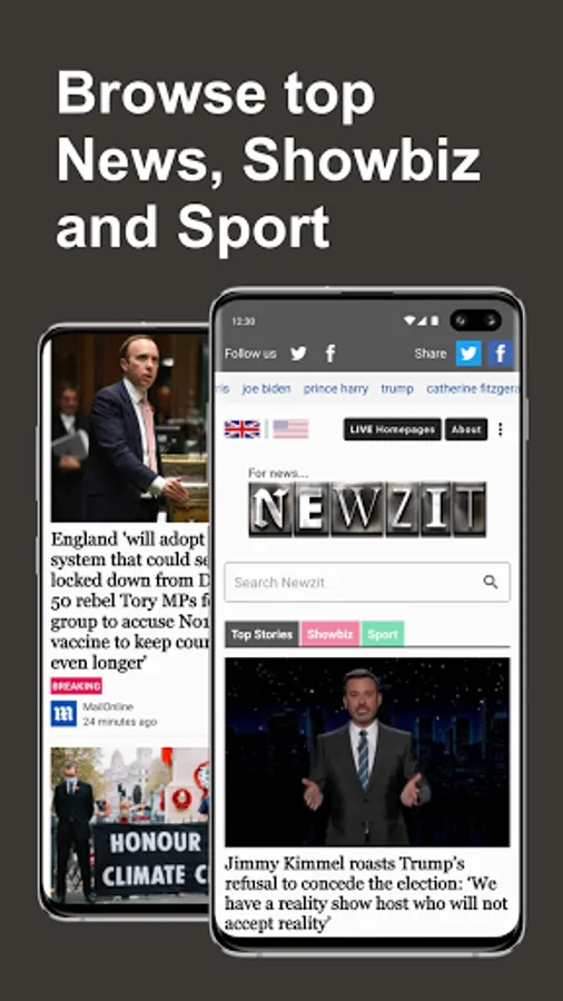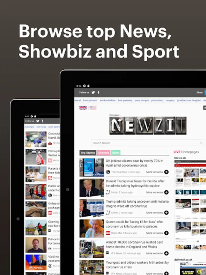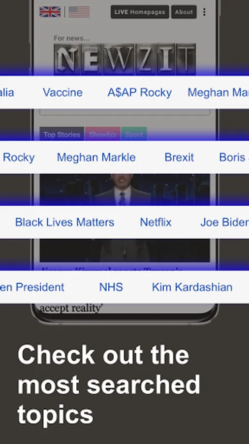 • Top Stories are presented for the US and UK. You can toggle between the two by clicking the relevant flag at the top of the page.