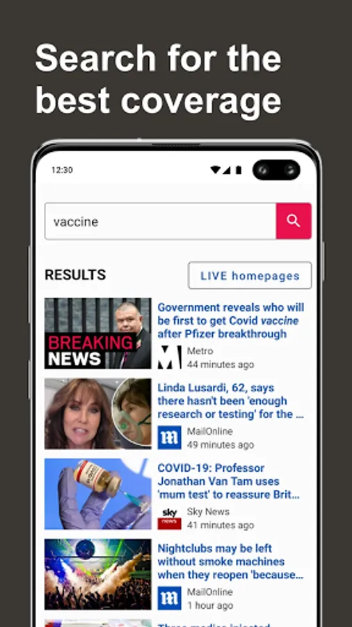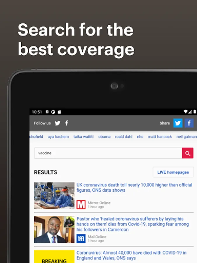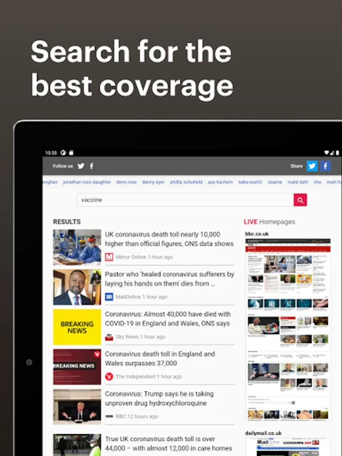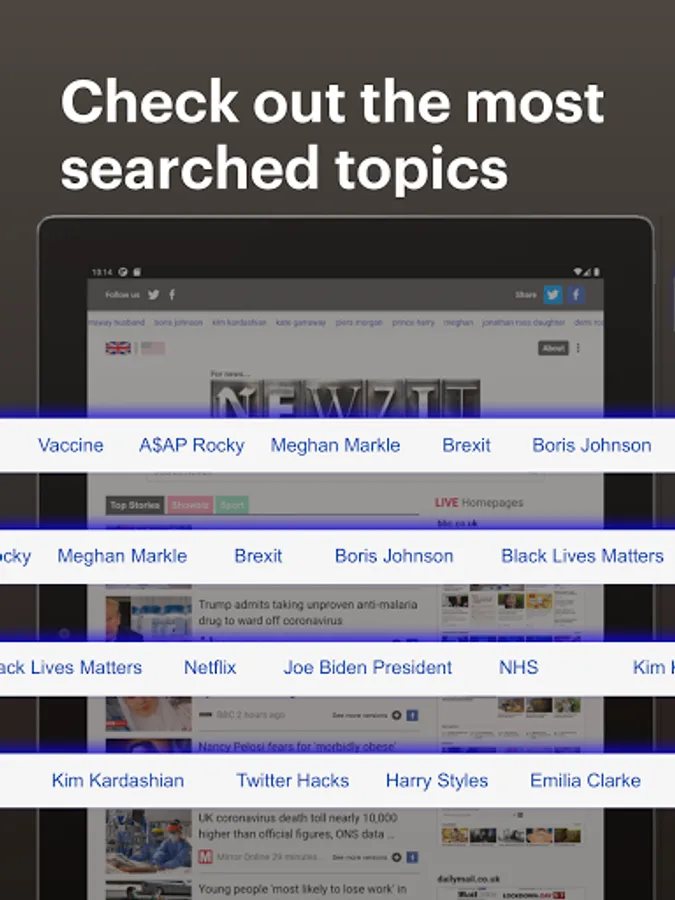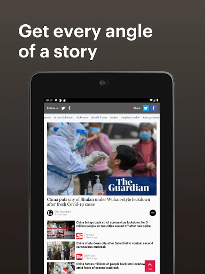 • You can either use the search bar or browse the day’s 60 Top Stories in the US and UK, picked strictly by algorithm.