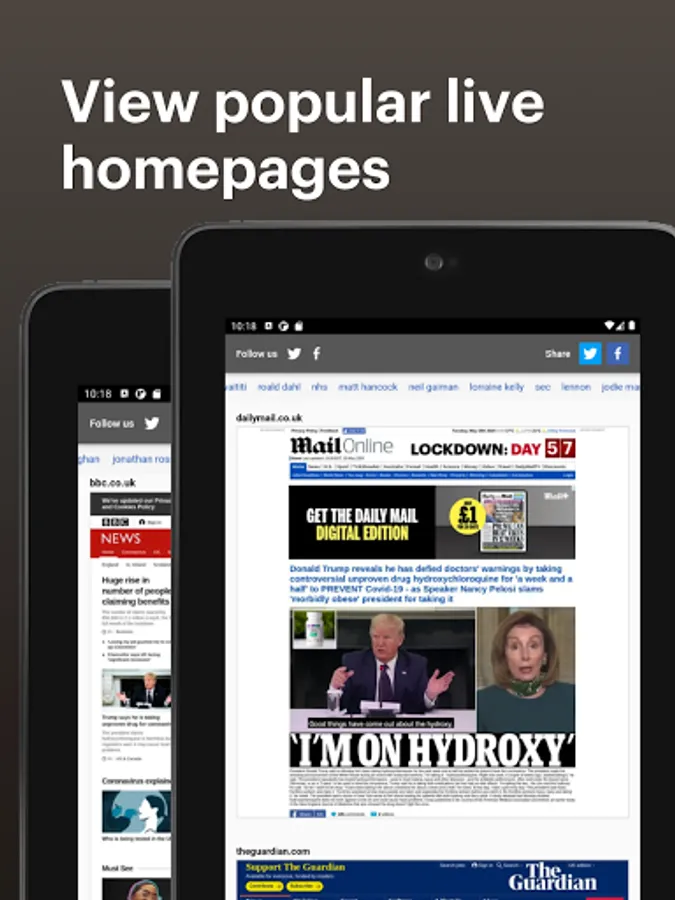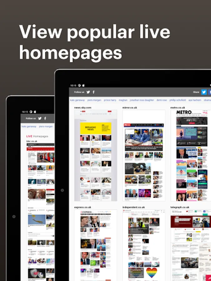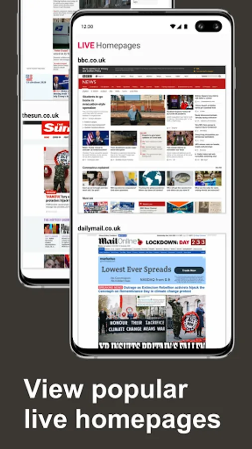 • Thumbnails of popular home pages for the US and UK are included so you can see at a glance what is going on in your country and visit those sites directly by clicking the relevant page.