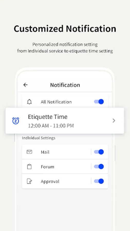 We provide Mail, Contacts, Calendar, Forum and Approval to build a mobile office environment.