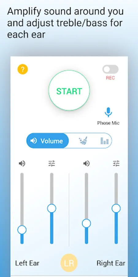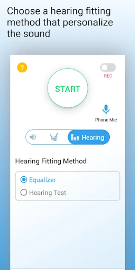 AmiHear provides a self-fit built-in hearing test. Based on the hearing test result, AmiHear will automatically adjust audio to compensate for your hearing loss of each ear separately.