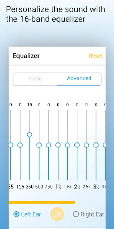 If you have tinnitus and would like to filter specific frequency, you can use the 16-band equalizer in AmiHear to create an audible notch in the sound spectrum. In other words, using 16-band equalizer to slightly alters the sound. Your sense of hearing is able to quickly adapt to this modified input to get tinnitus relief.