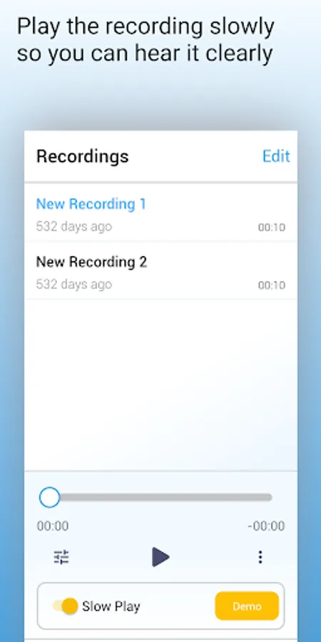 AmiHear Improves comprehension of conversation by slowing down the speed while playing the recording.