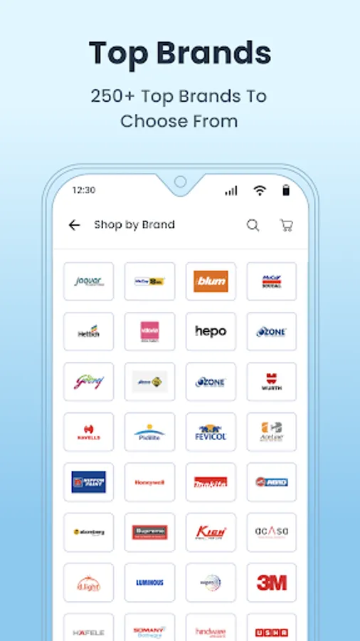 🏠. You can find globally trusted brands like Godrej, Ozone, Pidilite, Fevicol, Dr. Fixit, Kafe, Faber, IFB, Elica, Hettich, Hafele, Yale, Dorset, McCoy 8m, McCoy Soudal, Durian, Action Tesa, Greenply, Link, Century Ply, ABRO, Futura Sinks, Bosch, Valencia Kich, Kakal Brothers, and Atomberg from the construction industry.