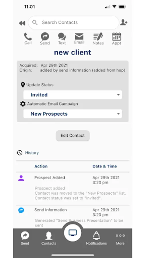 -Automatically track the interaction your contact has with your website or messages with detailed history of every action so you know what you have sent, notes you have made and what they have seen.