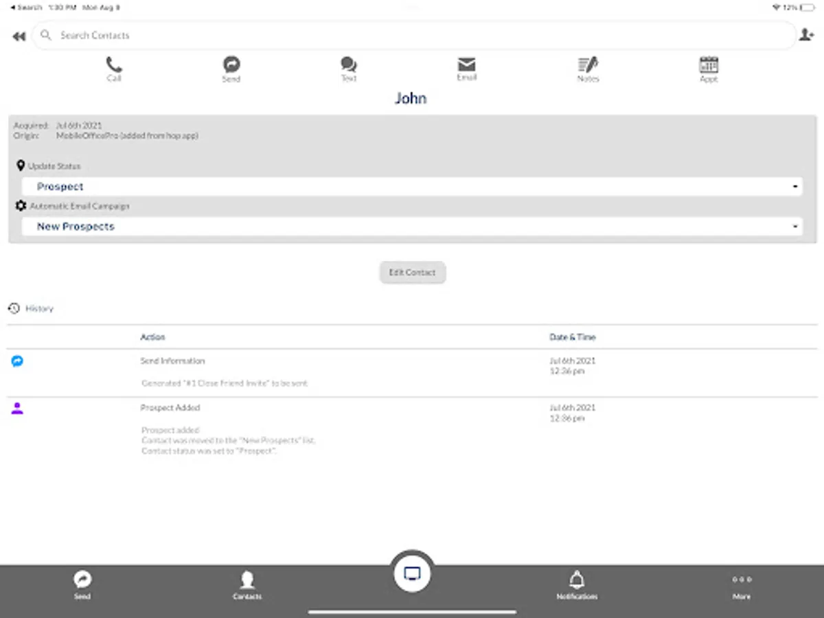 -Easily keep track of the next step for each prospect as the app automatically organizes your contacts into groups based on their actions.