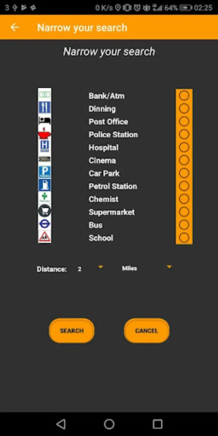Find places around yourself or a point designed by you on the map.